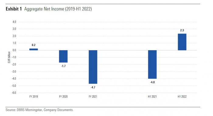 Όπως τονίζει ο οίκος στην έκθεσή του οι μεγάλες ελληνικές τράπεζες (Alpha Bank, Eurobank, Εθνική Τράπεζα της Ελλάδος και Πειραιώς) παρουσίασαν συνολικά καθαρά κέρδη 2,3 δισ. ευρώ το πρώτο εξάμηνο του 2022, έναντι καθαρών ζημιών 4 δισ. ευρώ την ίδια περίοδο του 2021. Η βελτίωση οφείλεται στα υψηλότερα έσοδα, τα χαμηλότερα λειτουργικά έξοδα και το μειωμένο πιστωτικό κόστος, τα οποία αποτελούν απόδειξη της σημαντικής προόδου που έχει σημειωθεί γύρω από τη μείωση του κινδύνου και την αναδιάρθρωση τα τελευταία χρόνια, μαζί με την ανάκαμψη της ελληνικής οικονομίας από την παγκόσμια πανδημία του κορονοϊού.