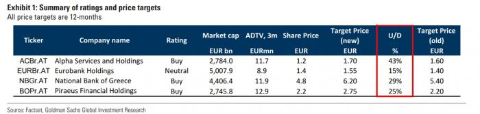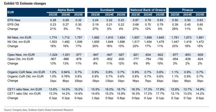 Σε ό,τι αφορά τις εκτιμήσεις ανά τράπεζα η Goldman Sachs τονίζει τα ακόλουθα: