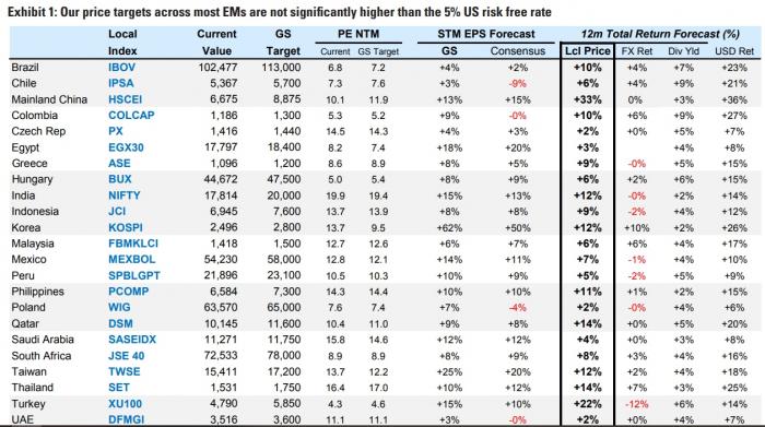 Ακόμη ο ο αμερικανικός όμιλος αυξάνει την τιμή-στόχο για τον δείκτη MSCI Αναδυόμενων Αγορών στις 1.150 μονάδες από τις 1.125 μονάδες προηγουμένως, ενώ αναμένει περιορισμένα περιθώρια ανόδου για τον ευρωπαϊκό Stoxx 600 στις 475 μονάδες και αρνητικά περιθώρια ανόδου πλέον για τον δείκτη S&P 500 στις 4.000 μονάδες.
