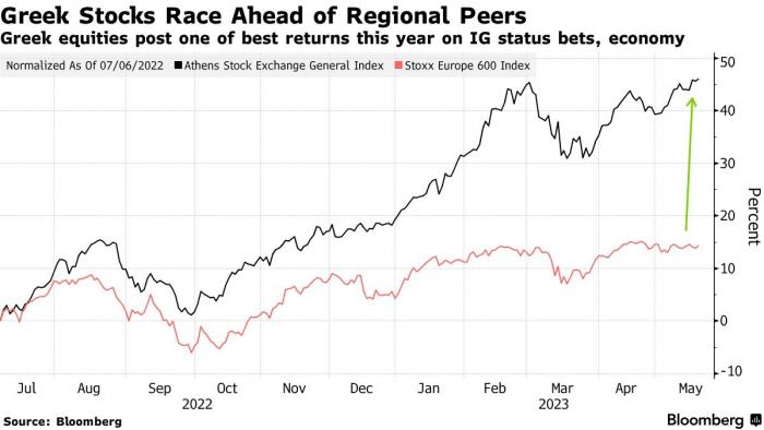 Ο Γενικός Δείκτης του ΧΑ έχει ενισχυθεί 22% από τις αρχές του 2023, έχοντας την 6η καλύτερη επίδοση μεταξύ των 92 δεικτών που παρακολουθεί το Bloomberg και ξεπερνά πολύ τις αντίστοιχες αποδόσεις των ευρωπαϊκών αγορών. Τη μεγαλύτερη ώθηση την έχει δεχθεί από τις μετοχές των Τρ. Πειραιώς και Εθνικής Τράπεζα αλλά και από τον τίτλο του ΟΠΑΠ.