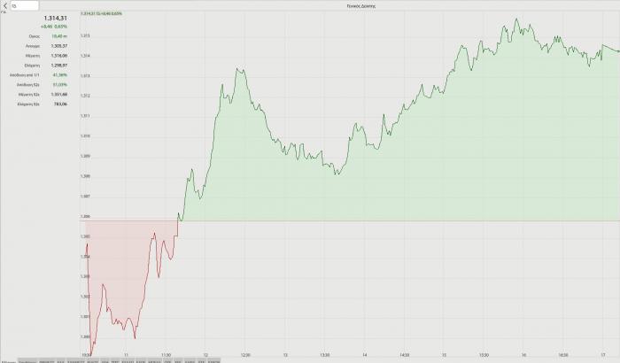 Την Τετάρτη ο Γ.Δ. έφτασε να υποχωρεί έως 3,22% στα χαμηλά, όμως τελικώς έκλεισε με πτώση 1,39%, ενώ χθες η αγορά έφτασε έως το χαμηλό των 1.298,97 μονάδων όταν υποχωρούσε έως 0,53%, όμως τελικώς έκλεισε με άνοδο 0,65% στις 1.314,31 μονάδες. Κοινός παρανομαστής και των δύο συνεδριάσεων το «σκούπισμα» των αγοραστών στα χαμηλά, αλλά και η επιβεβαίωση της ανθεκτικότητας των 1.300 μονάδων.