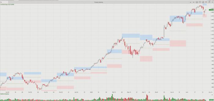 Αξιοσημείωτη ήταν η αντίδραση της αγοράς την περασμένη Τετάρτη όπου στον απόηχο της υποβάθμισης των ΗΠΑ ο Γενικός Δείκτης βρέθηκε να υποχωρεί ενδοσυνεδριακά μέχρι τις 1.281,70 μονάδες καταγράφοντας απώλειες άνω του -4%. Οι αγοραστές γρήγορα έσπευσαν να εκμεταλλευτούν την πτώση των τιμών, στις τράπεζες και σε πολλά άλλα blue chips, με αποτέλεσμα η αγορά να ανακτήσει μεγάλο μέρος των απωλειών με την αγορά να κερδίζει έκτοτε κοντά στις 40 μονάδες.