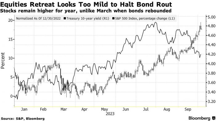 Όλα αυτά σημαίνουν ότι η μοίρα της αγοράς ομολόγων βρίσκεται στα χέρια των μετοχών, σύμφωνα με την Barclays. Η πτώση του δείκτη S&P 500 κατά 5% περίπου τους τελευταίους τρεις μήνες υπολείπεται κατά πολύ αυτού που απαιτείται για να προκαλέσει ανάκαμψη στα σταθερά εισοδήματα, έγραψαν οι αναλυτές.