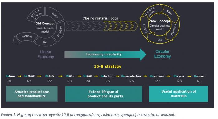 Οι επιχειρήσεις υιοθετούν όλο και περισσότερο πρακτικές κυκλικής οικονομίας, προσπαθώντας να ελαχιστοποιήσουν το αποτύπωμά τους, χρησιμοποιώντας τη στρατηγική των “10-R”, που αποτελούν τους 10 βασικούς μοχλούς της κυκλικότητας.