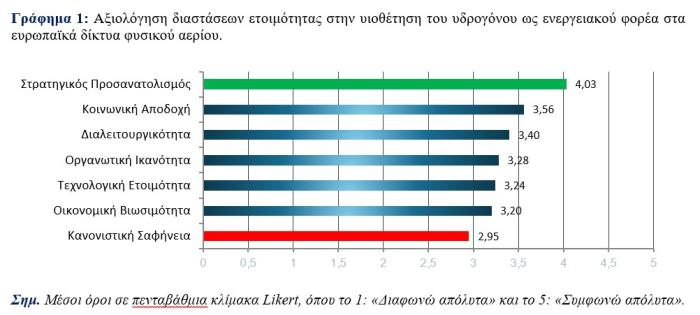 Ο δείκτης στρατηγικού προσανατολισμού εμφανίζει τη μεγαλύτερη μέση τιμή στη σχετική αξιολόγηση, γεγονός που δείχνει ότι οι περισσότεροι συμμετέχοντες θεωρούν το υδρογόνο αναπόσπαστο μέρος του μελλοντικού ενεργειακού συστήματος.