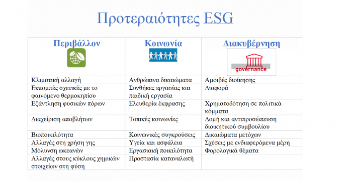 • η ενίσχυση της χρηματοπιστωτικής σταθερότητας με την ενσωμάτωση περιβαλλοντικών, κοινωνικών παραγόντων και παραγόντων διακυβέρνησης (Environmental – Social – Governance, ESG) στη λήψη επενδυτικών αποφάσεωνiv.