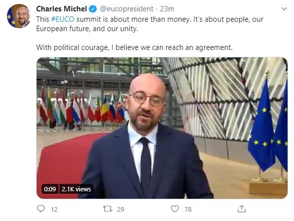 «Θα είναι δύσκολες διαπραγματεύσεις, δεν είναι μόνο τα χρήματα. Είναι για τους πολίτες της Ευρώπης. Θέλουμε μια Ευρώπη πιο σταθερή. Πιστεύω ότι μπορεί να έχουμε συμφωνία», τόνισε ο κ. Μισέλ.