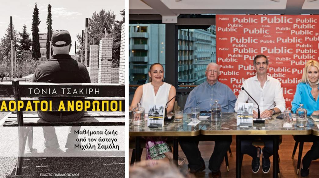 Σε μια κατάμεστη αίθουσα με πλήθος καλεσμένων από τον πολιτικό, καλλιτεχνικό και δημοσιογραφικό χώρο πραγματοποιήθηκε την προηγούμενη εβδομάδά η παρουσίαση του βιβλίου «Αόρατοι Άνθρωποι: Μαθήματα ζωής από τον άστεγο Μιχάλη Σαμόλη» Τόνιας Τσακίρη, από τις Εκδόσεις Παπαδόπουλος στο café του Public Συντάγματος.
