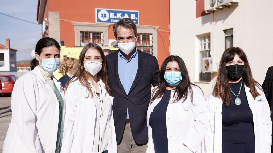 The prime minister paid a visit to Limnos General Hospital, which also serves as a vaccination centre, and spoke with the management and staff, stressing the importance of vaccination ahead of the opening of schools on January 10.