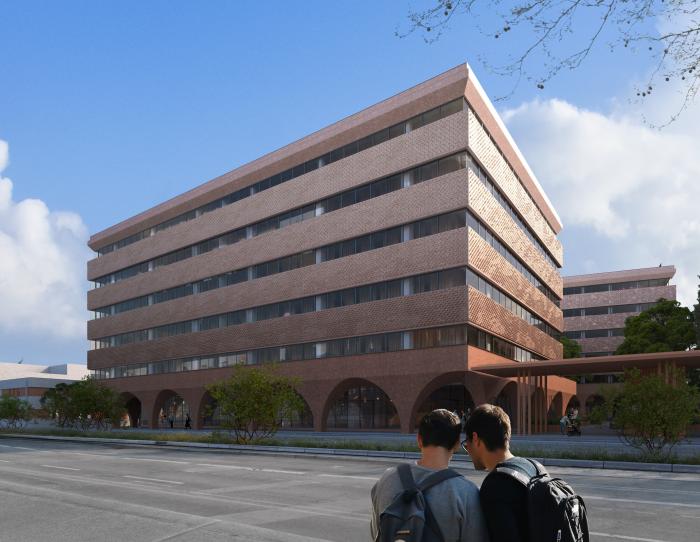 Το νέο συγκρότημα «πράσινων» και αειφόρων γραφείων, συνολικής δόμησης 31.000 τ.μ., σε οικόπεδο έκτασης 7,7 στρεμμάτων, που βρίσκεται σε στρατηγική θέση στη Δυτική Είσοδο της Θεσσαλονίκης, θα αποτελείται από τέσσερα ανεξάρτητα κτίρια με δυο κοινά υπόγεια.