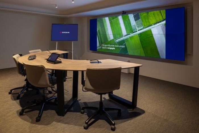 «Παντρεύοντας» την ιστορία με την τεχνολογίας, μια σημαντική καινοτομία του νέου «αρχηγείου» της Eurobank, αποτελεί το Signature Room. Ένα ειδικά σχεδιασμένο meeting room που ενσωματώνει τις τελευταίες τεχνολογίες για πλήρως διαδραστική επικοινωνία, υποστηρίζοντας την βέλτιστη ανάπτυξη του υβριδικού μοντέλου εργασίας που έχει υιοθετήσει η Eurobank.