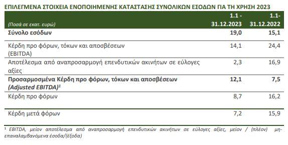 Παράλληλα τα προσαρμοσμένα EBIΤDA της εταιρείας αυξήθηκαν στα 12,1 εκατ. ευρώ, με την εσωτερική αξία της μετοχής (NAV) να ενισχύεται στα 147,2 εκατ. ευρώ ή στα 1,71 ευρώ ανά μετοχή.
