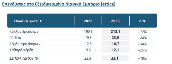 Στα ανωτέρω ενοποιημένα αποτελέσματα: (α) περιλαμβάνονται τα αποτελέσματα των: Astir, Coleus, BYTE, ADACOM, IDEAL Electronics και των θυγατρικών τους ενώ για την χρήση 2023 έχουν συμπεριληφθεί και τα αποτελέσματα της εταιρείας Αττικά Πολυκαταστήματα και (β) παρουσιάζονται τα λειτουργικά μεγέθη και ως εκ τούτου δεν περιλαμβάνεται η επίδραση του ΔΠΧΑ 16, η οποία παρουσιάζεται διακριτά σε επίπεδο EBITDA κερδοφορίας.