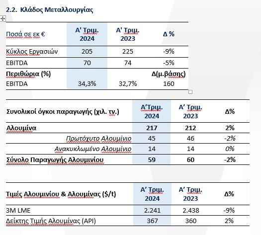 Η Mytilineos Energy & Metals ανακοινώνει τα βασικά οικονομικά μεγέθη Α’ τριμήνου 2024.