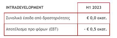 Η INTRADEVELOPMENT, εταιρεία του Ομίλου που δραστηριοποιείται στο χώρο της ανάπτυξης ακινήτων και κατέχει τη συμμετοχή του Ομίλου στην ΚΕΚΡΟΨ, βρίσκεται σε φάση σχεδιασμού των επόμενων εγχειρημάτων της.