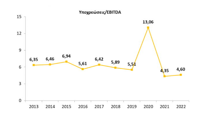 Από τη χρηματοοικονομική ανάλυση του κλάδου, όπως επισημαίνει η σύμβουλος της Στόχασις Ελισάβετ Μαλούκου, το ΕΒΙΤDA, ως ποσοστό επί των πωλήσεων των επιχειρήσεων του κλάδου το 2022, επανήλθε στην «κανονικότητα» των επιπέδων του 2019, έπειτα από την αυξομείωση που παρουσίασε τη διετία 2020-2021. Ο δείκτης Υποχρεώσεις/EBITDA την περίοδο 2013-2022 (με εξαίρεση το 2020) «αποτυπώνει» τη δυνατότητα των επιχειρήσεων όσον αφορά στην εξυπηρέτηση των υποχρεώσεών τους.
