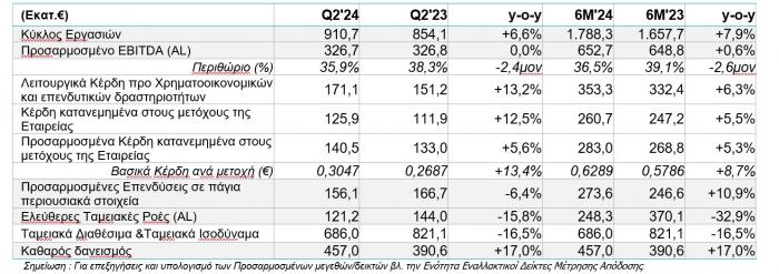 Οι ελεύθερες ταμειακές ροές μετά από μισθώσεις διαμορφώθηκαν σε €121,2 εκατ. το Β’ τρίμηνο του 2024, μειωμένες κατά 15,8% από το Β’ τρίμηνο του 2023 κυρίως λόγω διαφορετικού χρονισμού πληρωμών στο πλαίσιο του προγράμματος εθελούσιας αποχώρησης. Η εταιρεία διατηρεί το στόχο των Ελεύθερων Ταμειακών Ροών για το 2024.