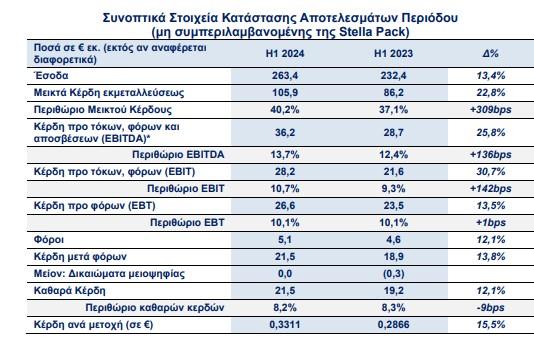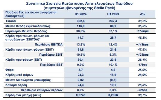 Τα βελτιωμένα περιθώρια κέρδους ενισχύουν την αύξηση στα Καθαρά Κέρδη Δημοσιευμένα Μεγέθη (συμπεριλαμβανομένης της Stella Pack).