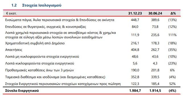 - Καθαρή ρευστότητα Ομίλου1 : €458 εκατ. στις 30.06.2024 έναντι €3022 εκατ. στις 31.12.2023.