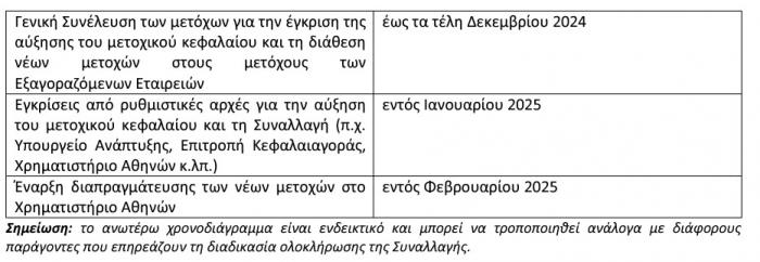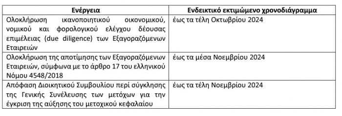 4) κατωτέρω παρατίθεται ενδεικτικό χρονοδιάγραμμα των βασικών ενεργειών για την ολοκλήρωση της Συναλλαγής, η οποία επί του παρόντος αναμένεται να ολοκληρωθεί εντός του πρώτου τριμήνου του 2025: