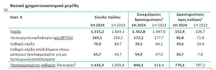 Τα Κέρδη μετά από φόρους αποδιδόμενα στους μετόχους από συνεχιζόμενες δραστηριότητες χωρίς την επίδραση των ανωτέρω μη λειτουργικών αποτελεσμάτων, ανήλθαν σε €54,9 εκατ. έναντι €47,0 εκατ. την αντίστοιχη περίοδο του 2023.