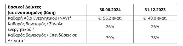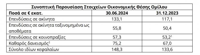 Ο Όμιλος το α’ εξάμηνο του 2024 συνέχισε την αναπτυξιακή πορεία του με αύξηση της Καθαρής Αξίας Ενεργητικού (NAV) του Ομίλου, η οποία ανέρχεται την 30.06.2024 σε €156,2 εκατ. (31.12.2023: €140,0 εκατ.).