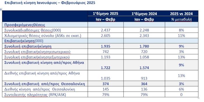 Ειδικότερα, η AEGEAΝ στο παραδοσιακά πιο αδύναμο δίμηνο του έτους κατέγραψε αύξηση 13% στην κίνηση εξωτερικού και 3% στην κίνηση εσωτερικού, με τους συντελεστές πληρότητας να βρίσκονται στα ίδια επίπεδα με την αντίστοιχη περίοδο του προηγουμένου έτους.