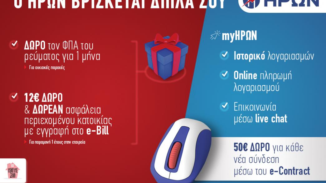 Επιπλέον όλων των παραπάνω, προτρέποντας όλους τους καταναλωτές να παραμείνουν στο σπίτι, παρέχει online υπηρεσίες ώστε να πραγματοποιούνται ηλεκτρονικά όλες οι συναλλαγές. Μέσω της πλατφόρμας myΗΡΩΝ μπορούν όλοι οι πελάτες του ΗΡΩΝΑ να λαμβάνουν, να εξοφλούν καθώς και να βλέπουν το ιστορικό των λογαριασμών τους ηλεκτρονικά. Στο myΗΡΩΝ δίνεται επίσης η δυνατότητα της ζωντανής συνομιλίας με εκπρόσωπο της εξυπηρέτησης πελατών μέσω του live chat. Για όσους δεν είναι πελάτες και θέλουν να προχωρήσουν σε νέα σύνδεση, μπορούν να πραγματοποιήσουν την αίτησή τους ηλεκτρονικά μέσω του e-contract και να λάβουν επιπλέον 50€ δώρο εγγραφής.