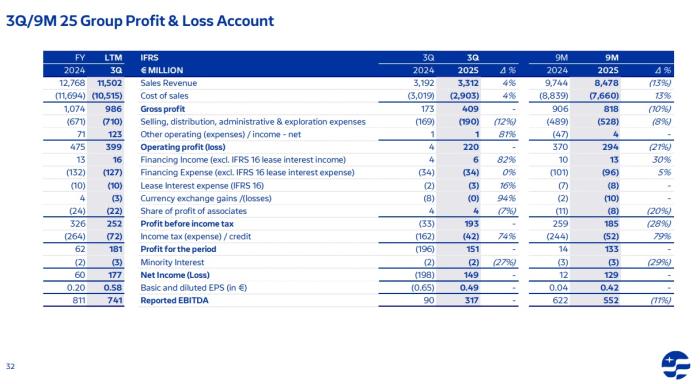 Οι σημαντικά μειωμένες διεθνείς τιμές κατά το α' εξάμηνο οδήγησαν σε πτώση 59% της κερδοφορίας του ομίλου, στα 462 εκατ. ευρώ, παρότι στο γ' τρίμηνο τα κέρδη αυξήθηκαν από 253 σε 300 εκατ. ευρώ.