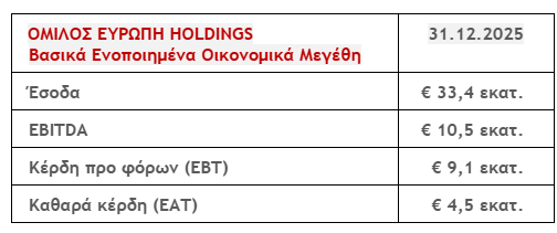 2. Η ΕΥΡΩΠΗ HOLDINGS, μέσα στο 2025 ολοκλήρωσε τη διαμόρφωση του ομίλου της με εξαγορά του 100% της ΕΥΡΩΠΗ Ασφαλιστική, εξαγορά των μεσιτικών εταιρειών ΝΑΚ INSURANCE BROKERS ΜΑΕ και ΑΜΥΝΑ ΜΕΣΙΤΕΣ ΑΣΦΑΛΙΣΕΩΝ Ι.Κ.Ε και ολοκλήρωσε με επιτυχία ΑΜΚ € 68,3 εκατ.