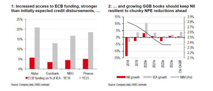 Στο προοίμιο της έκθεσή της η HSBC υπογραμμίζει ότι ο τραπεζικός δείκτης έχει υποχωρήσει περίπου 60% από την αρχή του 2020, υποαποδίδοντας σε σχέση με τους αντίστοιχους τόσο των αναδυόμενων αλλά και των ευρωπαϊκών τραπεζών κατά 30% και 25% αντίστοιχα, εξαιτίας των ανησυχιών που υπάρχουν για την ποιότητα του ενεργητικού των τραπεζών αλλά και για την επάρκεια των κεφαλαίων τους.