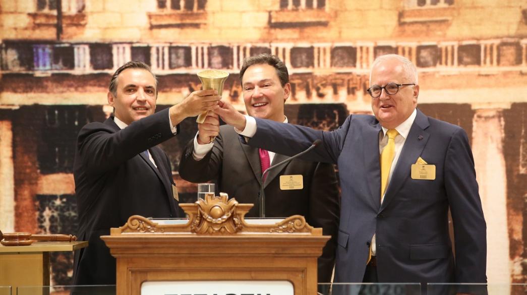 Το παραδοσιακό καμπανάκι έναρξης της συνεδρίασης του Χρηματιστηρίου Αθηνών χτύπησε ο διευθύνων σύμβουλος της Lamda Develompent, Οδυσσέας Αθανασίου, με αφορμή την εισαγωγή προς διαπραγμάτευση στην Οργανωμένη Αγορά του Χ.Α. του εταιρικού της ομολόγου, όπου συνολικά αντλήθηκαν 300.000.000 ευρώ.