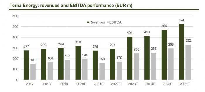 Για το χαρτοφυλάκιο της ΤΕΡΝΑ Ενεργειακή στην Ελλάδα, η Wood & Company επισημαίνει ότι η εταιρεία έχει δείξει αφοσίωση στην ανάπτυξη με αιολικά, φωτοβολταϊκά και υβριδικά έργα. Εκτός από το αιολικό έργο των 430 MW (330MW στον Καφηρέα και ακόμα 97 MW σε Ταράτσα και Ευρυτανία), η χρηματιστηριακή έχει συμπεριλάβει στην ανάλυση της και τα επιπλέον 200 MW αιολικών πάρκων και τα 300 MW φωτοβολταϊκών που θα εγκατασταθούν στην περίοδο 2022-2025.