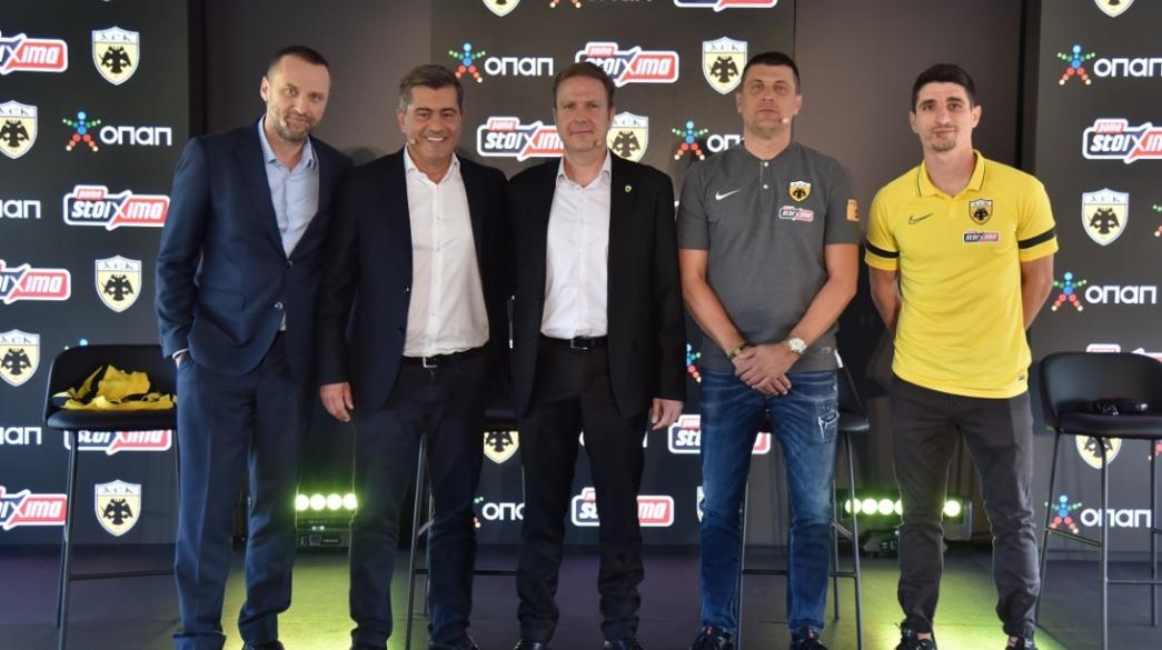 Το ΠΑΜΕ ΣΤΟΙΧΗΜΑ θα συνεχίσει να είναι ο Μέγας Χορηγός της ΠΑΕ ΑΕΚ, με το λογότυπο του παιχνιδιού να προβάλλεται στην επίσημη εμφάνιση της ομάδας. Παράλληλα, η συνεργασία του ΟΠΑΠ και της ΠΑΕ ΑΕΚ θα εστιάσει, για ακόμη μια σεζόν, σε πρωτοβουλίες που προωθούν τόσο τα αθλητικά ιδεώδη, όσο και την κοινωνική συνεισφορά».