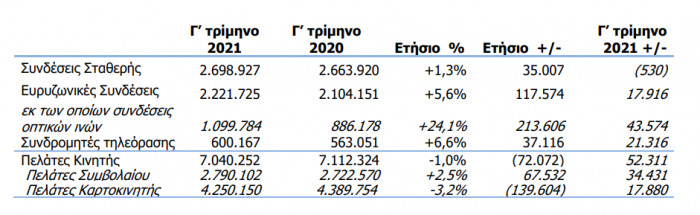 Μεγέθη ΟΤΕ στο εννεάμηνο 2021