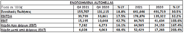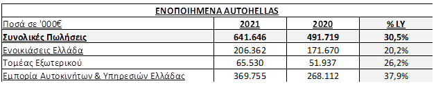 Ισχυρά ανοδικά κινήθηκαν τα κέρδη του 2021 για την Autohellas, καθώς αυξήθηκαν κατά 167,4%, ενώ παρουσιάζει εξαιρετική δυναμική τόσο σε επίπεδο ενοποιημένου κύκλου εργασιών Ομίλου, όσο και σε επίπεδο κερδοφορίας.