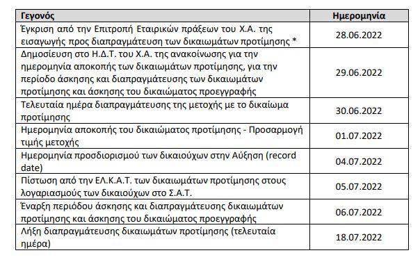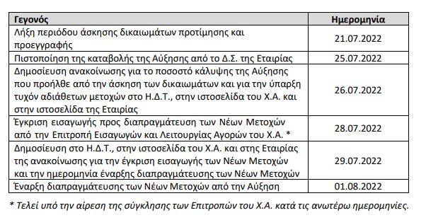 Το αναμενόμενο χρονοδιάγραμμα της ολοκλήρωσης της Αύξησης και της εισαγωγής προς διαπραγμάτευση των Νέων Μετοχών είναι το εξής: