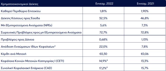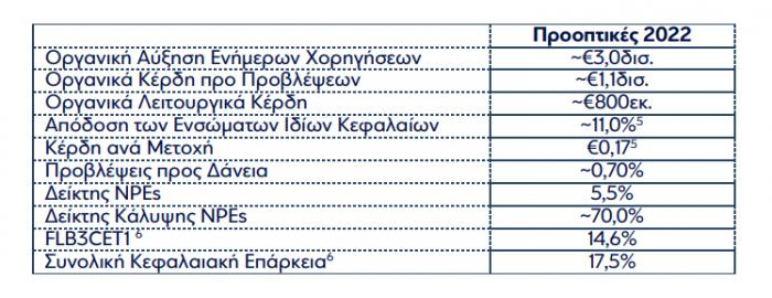Παράλληλα για το σύνολο του 2022 η τράπεζα έχει θέσει τους παρακάτω στόχους: