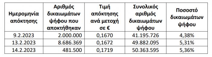 Σημειώνεται ότι έως την 9.2.2023 η εταιρία «Multiway Investments Ltd» κατείχε 39.195.726 δικαιώματα ψήφου, ήτοι ποσοστό 4,17% επί του συνόλου των δικαιωμάτων ψήφου της Εκδότριας.