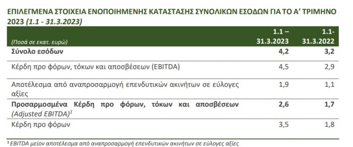 Πιο συγκεκριμένα τα έσοδα διαμορφώθηκαν σε 4,2 εκατ. ευρώ έναντι 3,2 εκατ. το πρώτο τρίμηνο του 2022, ενώ τα EBITDA ήταν 4,5 εκατ. έναντι 2,9 εκατ. Τα κέρδη προ φόρου διαμορφώθηκαν σε 3,5 εκατ. ευρώ έναντι 1,8 εκατ. ευρώ.