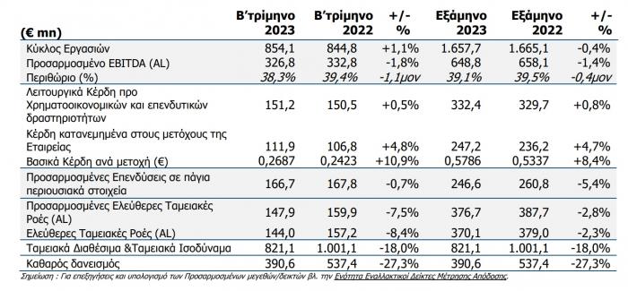 - Αύξηση εσόδων κατά 2,4%, προσαρμοσμένο EBITDA (AL) ενισχυμένο κατά 0,9%, με το περιθώριο στο 40,9%