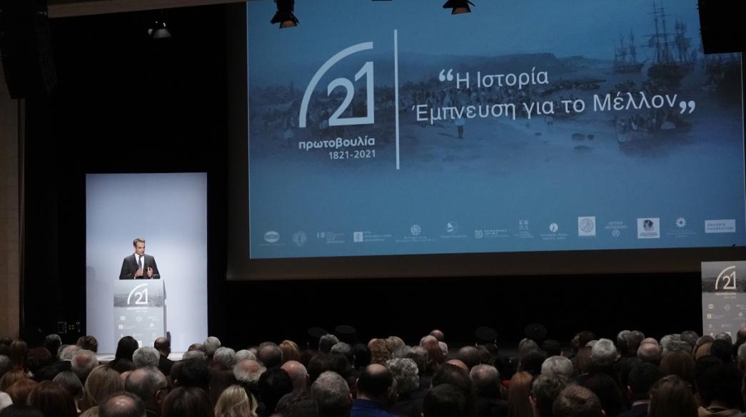»Καλούμαστε, ως κυβέρνηση αλλά και ως πολίτες, να απαντήσουμε με επιτυχία στην πολλαπλή επιταγή που συνδέεται με τον εορτασμό της εθνικής μας παλιγγενεσίας. Να αρθούμε στο ύψος των περιστάσεων και να ικανοποιήσουμε τα νέα ζητούμενα: Την υποχρέωση καλλιέργειας της ιστορικής αυτογνωσίας και της εθνικής μνήμης. Και τη συστηματική πλέξη της κοινωνικής ενότητας με την κριτική γνώση. Όπως και του ανοίγματος των ελληνικών οριζόντων στο σύγχρονο κόσμο με τη σταθερή ψυχική θωράκιση της εθνικής κοινότητας», υπογράμμισε ο Πρωθυπουργός και συμπλήρωσε: «Όλα αυτά προϋποθέτουν ενεργό συμμετοχή όλων και δεν αποτελούν μονοσήμαντη κρατική αρμοδιότητα. Γι’ αυτό κι η κυβέρνηση στέκεται αρωγός στην Πρωτοβουλία 1821-2021. Έχουμε εμπιστοσύνη στο ζήλο και το κύρος των εμπλεκόμενων φορέων καθώς τα 200 χρόνια από τον ξεσηκωμό δικαιωματικά αποτελούν υπόθεση ολόκληρης της κοινωνίας των πολιτών».