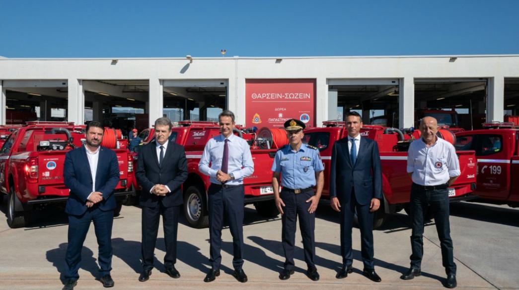 Παρουσία του Πρωθυπουργού, Κυριάκου Μητσοτάκη, πραγματοποιήθηκε σήμερα, 19 Ιουνίου, στις εγκαταστάσεις του Διεθνούς Αερολιμένα Αθηνών Ελ. Βενιζέλος, η τελετή παράδοσης στο Πυροσβεστικό Σώμα είκοσι (20) υδροφόρων πυροσβεστικών οχημάτων 4Χ4, ελαφρού τύπου, με δεξαμενή νερού χωρητικότητας 500lit, αυτόνομου πυροσβεστικού συγκροτήματος, δωρεά της εταιρείας ΠΑΠΑΣΤΡΑΤΟΣ Α.Β.Ε.Σ. με την υποστήριξη της Ελληνικής Ομάδας Διάσωσης (Ε.Ο.Δ.). Η αξία των οχημάτων αγγίζει σχεδόν το 1 εκατ. ευρώ.