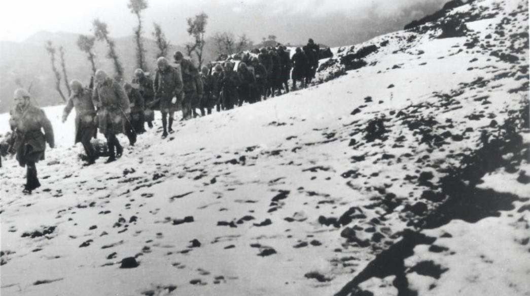 Αλλά καθ΄ ήν στιγμήν βαδίζουμε είς τα καταληφθέντα υψώματα του 1.700 υπέστην πολεμικόν ατύχημα, βεβαίως όχι πολύ σοβαρό και τας πρώτας πρακτικάς βοήθειας, μου τας παρείχε ο συνάδελφός μου και πατριώτης Νίκος Κάτσανος, οδηγήσας με εις το σκεπασμένο από χιόνι αντίσκηνο.