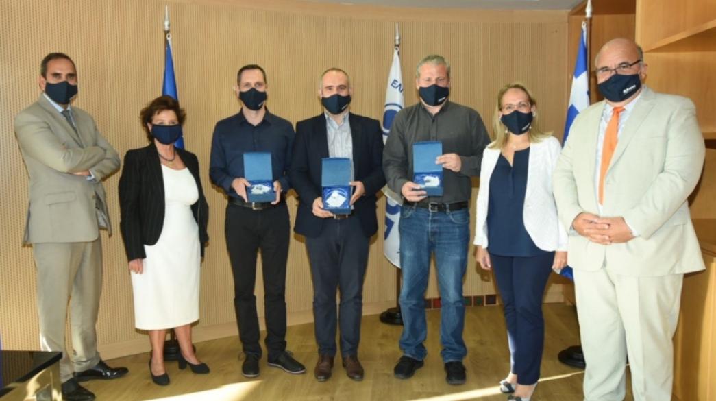 Σε μια ξεχωριστή τελετή που έλαβε χώρα στα γραφεία της Ελληνικής Αναπτυξιακής Τράπεζας - HDB, η Πρόεδρος & Διευθύνουσα Σύμβουλος, Αθηνά Χατζηπέτρου, ο Αντιπρόεδρος της HDB, Παντελής Τζωρτζάκης και ο Διευθυντής Επιχειρηματικής Καινοτομίας, Παναγιώτης Παπαγεωργίου, υποδέχθηκαν τους CEO’s των εταιρειών BioAssist , DNA SEQUENCE SLR & eNIOS για να τους απονείμουν τα βραβεία, που συνοδεύονται από την είσοδο των επιχειρήσεων στη νέα πλατφόρμα “InnoAgora powered by HDB” μέσω της οποίας θα έχουν άμεση διασύνδεση με επενδυτές. Πρόσθετα οι βραβευμένες επιχειρήσεις θα λάβουν υπηρεσίες mentoring και άλλες εξειδικευμένες συμβουλευτικές υπηρεσίες από τα στελέχη της HDB.