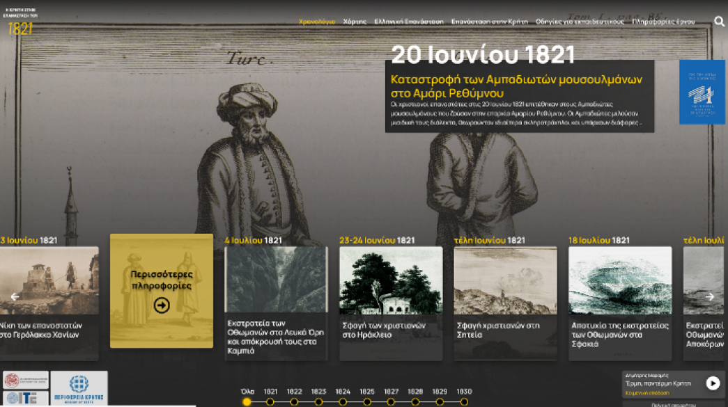 Ένας ψηφιακός ιστορικός χάρτης που θα αποτελέσει ερευνητικό και εκπαιδευτικό εργαλείο για τους καθηγητές και μαθητές των γυμνασίων και λυκείων της Κρήτης, είναι το αποτέλεσμα της συνεργασίας του Πανεπιστημίου Κρήτης και του Ιδρύματος Τεχνολογίας και Έρευνας, με χρηματοδότηση της Περιφέρειας Κρήτης, που τελεί υπό την αιγίδα της Επιτροπής ΕΛΛΑΔΑ 2021.
