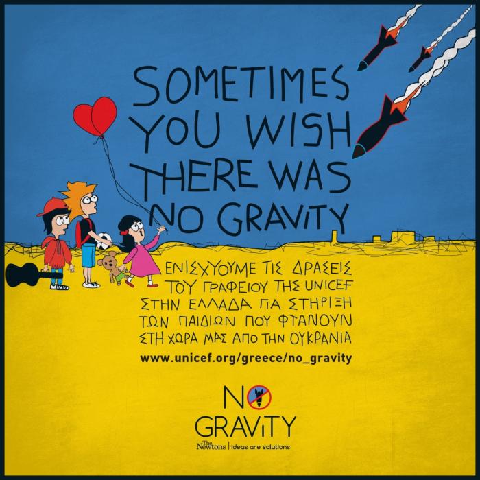 Η Gravity The Newtons σχεδιάζει και υλοποιεί την καμπάνια «Sometimes you wish there was no gravity.» Η καμπάνια αυτή στόχο έχει να ευαισθητοποιήσει, να παρακινήσει, αλλά και να ενημερώσει την ελληνική κοινωνία για τους τρόπους που μπορούμε να βοηθήσουμε ο καθένας μόνος του, αλλά και όλοι μαζί τον Ουκρανικό λαό.