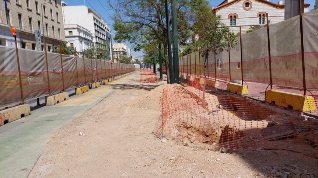 Όμως, όποιος περάσει από τον κεντρικό δρόμο της Αθήνας θα διαπιστώσει πως το εργοτάξιο είναι εδώ και πολλές εβδομάδες κλειστό! Κανένας δεν εργάζεται, χωρίς να υπάρχει και εξήγηση από το Δήμο Αθηναίων για τις μεγάλες καθυστερήσεις. Μάλιστα η πλευρά της δημοτικής αρχής εμφανίζεται καθησυχαστική και διαβεβαιώνει (με πρόσφατες δηλώσεις ανωτέρων στελεχών) πως το χρονοδιάγραμμα θα τηρηθεί.