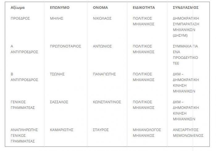 Σημ2: Ο εκλεγείς Παντελαίος Παναγιώτης συμμετείχε στη διαδικασία εκλογής ΔΕ/ΤΕΕ με ψηφοδέλτιο το οποίο στηρίχθηκε από τη ΣΥΜΜΑΧΙΑ ΓΙΑ ΕΝΑ ΠΡΟΟΔΕΥΤΙΚΟ ΤΕΕ.