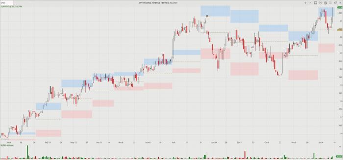 -- ΟΛΠ: Νέο υψηλό τεσσάρων ετών για τη μετοχή που έκλεισε με σημαντική άνοδο 3,24% την Παρασκευή, πιάνοντας τα 23,90 ευρώ, επίπεδα που είχε να δει από τις 27 Σεπτεμβρίου 2019. Πλέον, έστω και με δυσκολία, καθώς έχει άκρως συντηρητικό προφίλ, γύρισε με ασφάλεια στα προ πανδημίας επίπεδα. Η αλήθεια είναι πως από τότε που υποβιβάστηκε στον Mid Cap, έχει βελτιώσει σημαντικά την εικόνα του. Μιλάμε για τη μετοχή του 5ου μεγαλύτερου λιμανιού της Μεσογείου, σε ιδιαίτερα κομβικό γεωγραφικό και γεωστρατηγικό σημείο. Κάποιοι κάνουν συγκρίσεις και υπολογισμούς με τις τιμές που πουλήθηκαν ο λιμένας Ηγουμενίτσας και Ηρακλείου, όσο και με αποτιμήσεις λιμανιών όπως Αμβέρσας ή Βαλένθιας, τονίζοντας ότι ο ΟΛΠ είναι τουλάχιστον για 1 δισ. αποτίμηση. Την Παρασκευή η κεφαλαιοποίηση διαμορφώθηκε στα 597,5 εκατ. ευρώ.